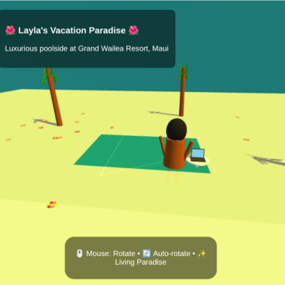 Prompt: Give me a Pixar style cartoon picture of a black woman on beach with a laptop. This is what Claude generated